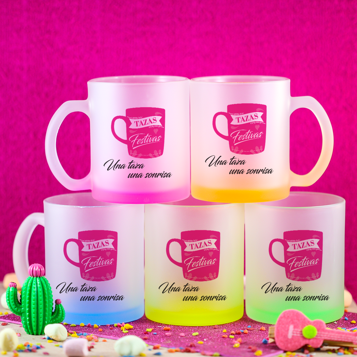 Las tazas de cristal satinado con fondo de color combinan perfecto con nuestros diseños o los tuyos.